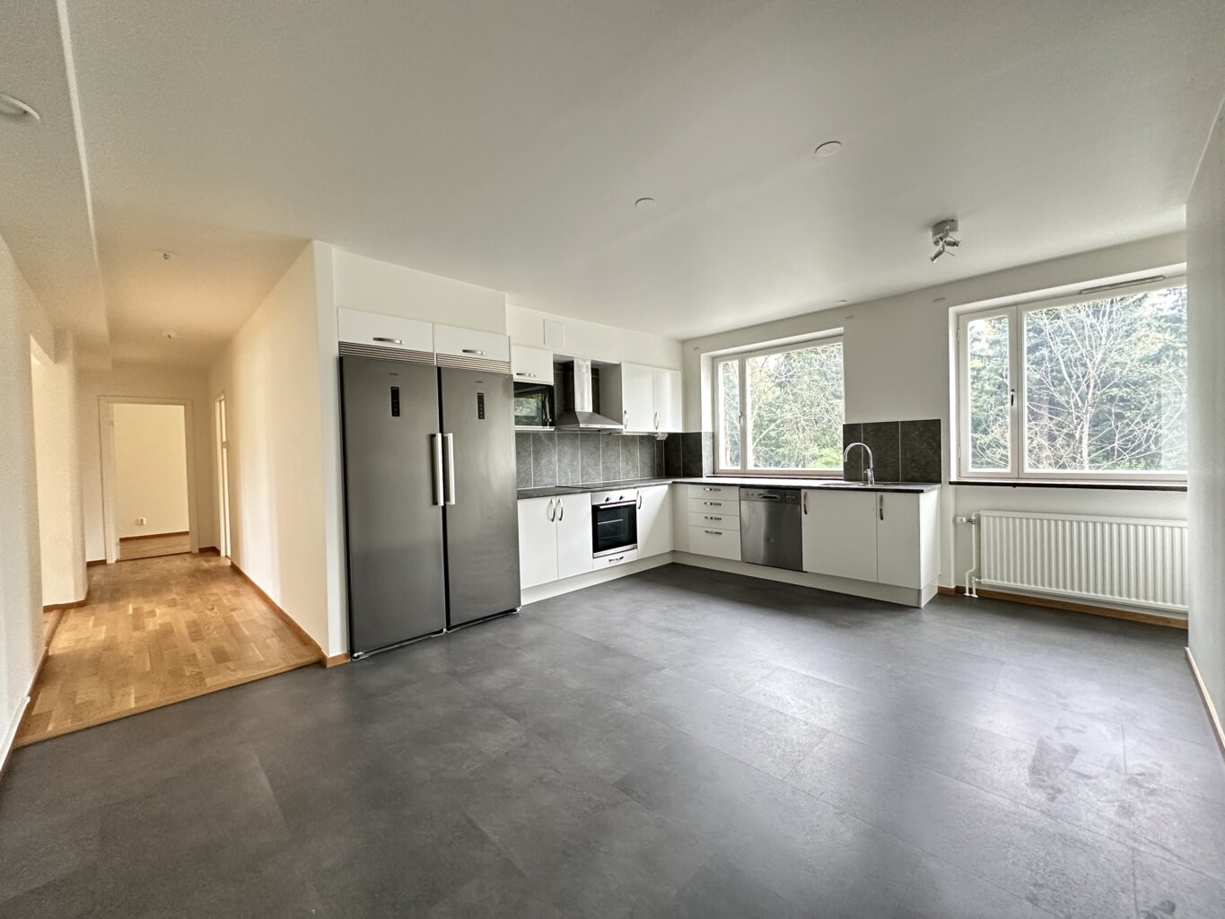 Denna välplanerade 3 rok-lägenhet om 100 m² erbjuder gott om utrymme och en inbjudande atmosfär. Lägenheten präglas av stora, ljusa rum och en planlösning som gör hemmet både praktiskt och socialt.